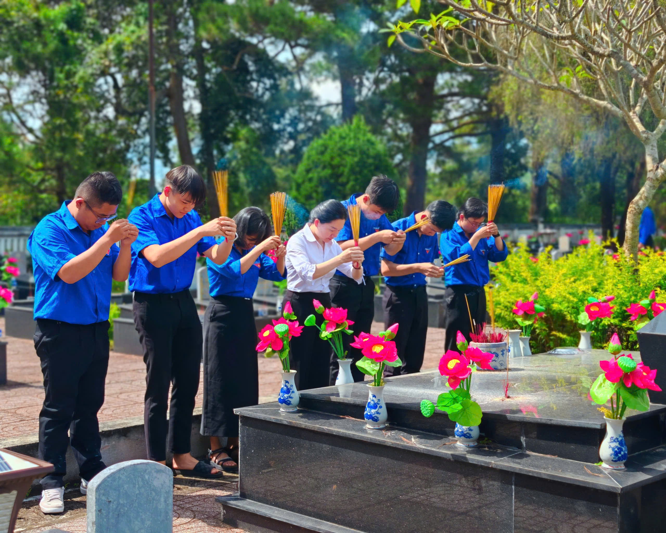 Xin gửi lời cảm ơn đến tất cả các bạn đoàn viên, thanh niên đã tích cực tham gia hoạt động đầy ý nghĩa này. Mỗi nén hương, mỗi việc làm nhỏ hôm nay là sự tri ân sâu sắc đối với những người đã ngã xuống vì Tổ quốc Việt Nam!