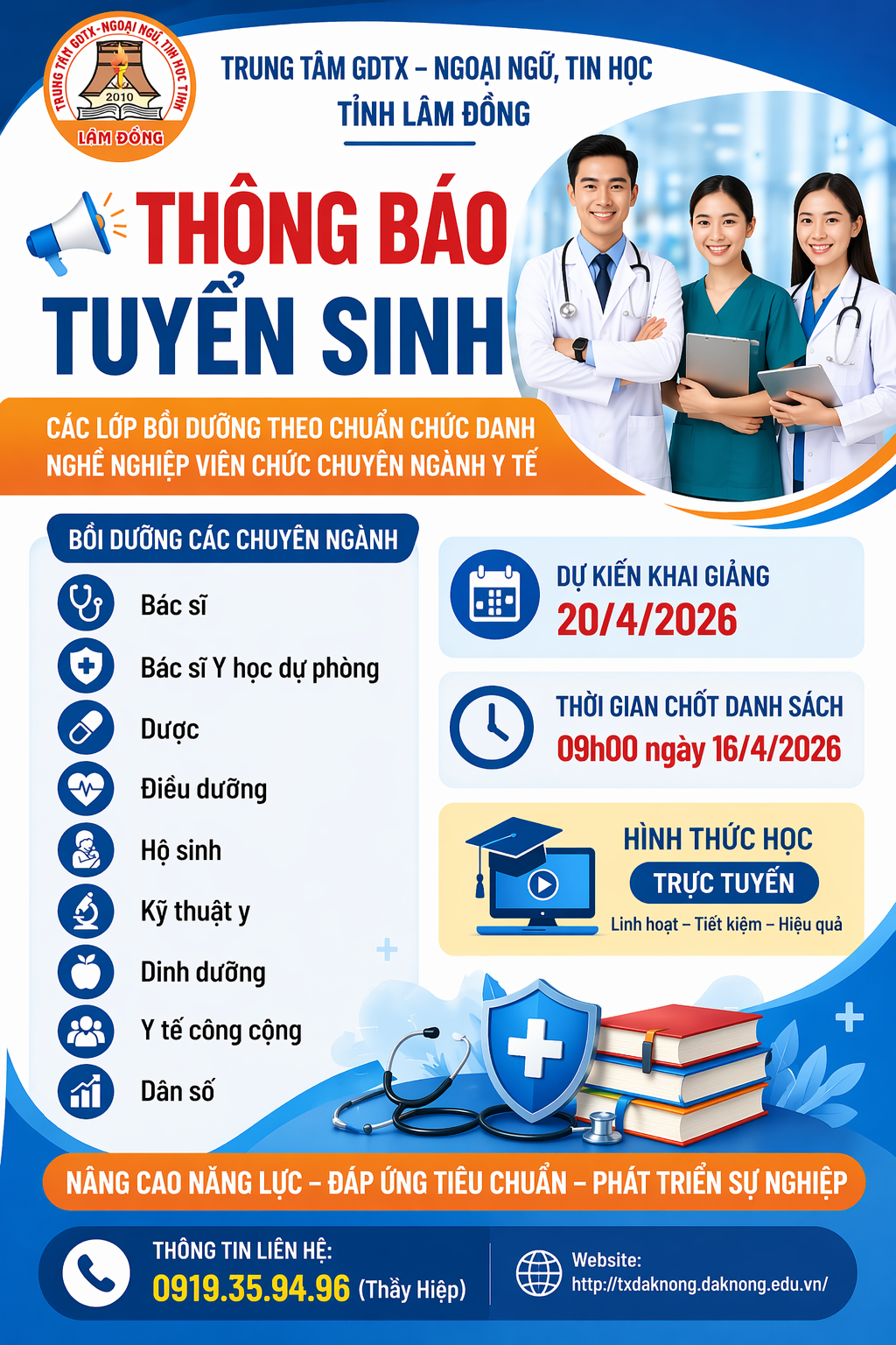 Thông báo tuyển sinh các lớp bồi dưỡng theo chuẩn chức danh nghề nghiệp chuyên ngành Y Tế